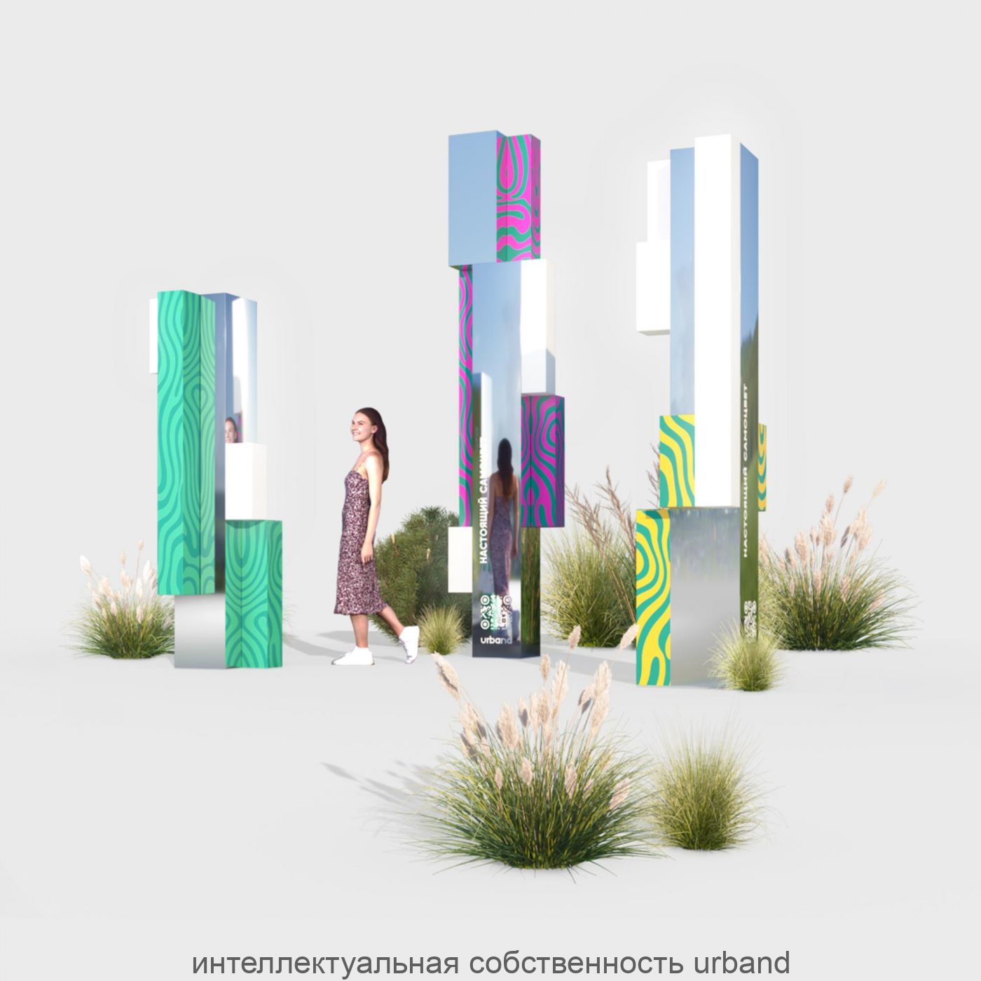 Самоцветы России — арт-объект, вдохновлённый богатством природных камней и людьми, которые делают страну уникальной. Самоцветы добывают в разных регионах России — на Урале, в Якутии, Карелии и Архангельской области. Зеркальные объекты отражают наблюдателя, напоминая: главное богатство России — её люди.