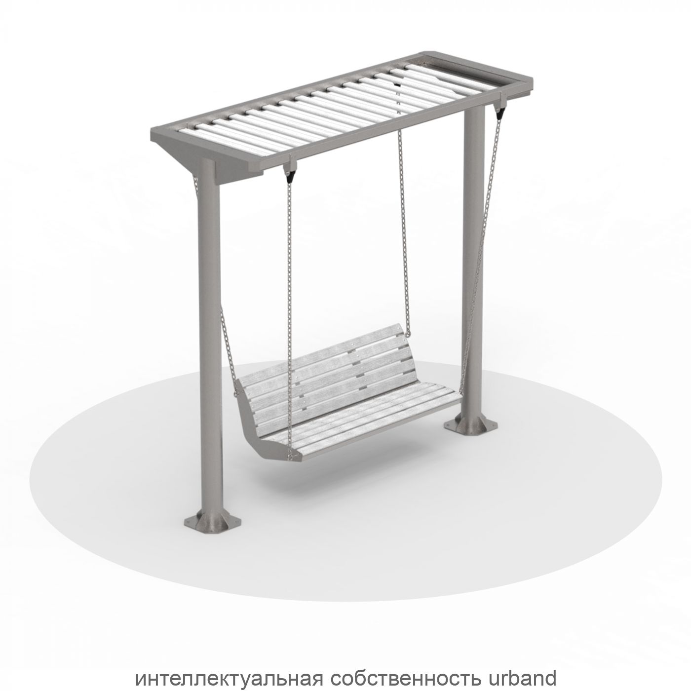 Качели с характерными для серии элементами и некоррозирующими материалами. Ажурная компоновка придаёт конструкции визуальную лёгкость и элегантность, сохраняя надёжность.