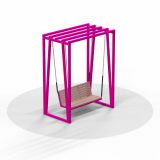 Классическая устойчивая качель с подвесной скамьёй. Благодаря характерным наклонным линиям, конструкция