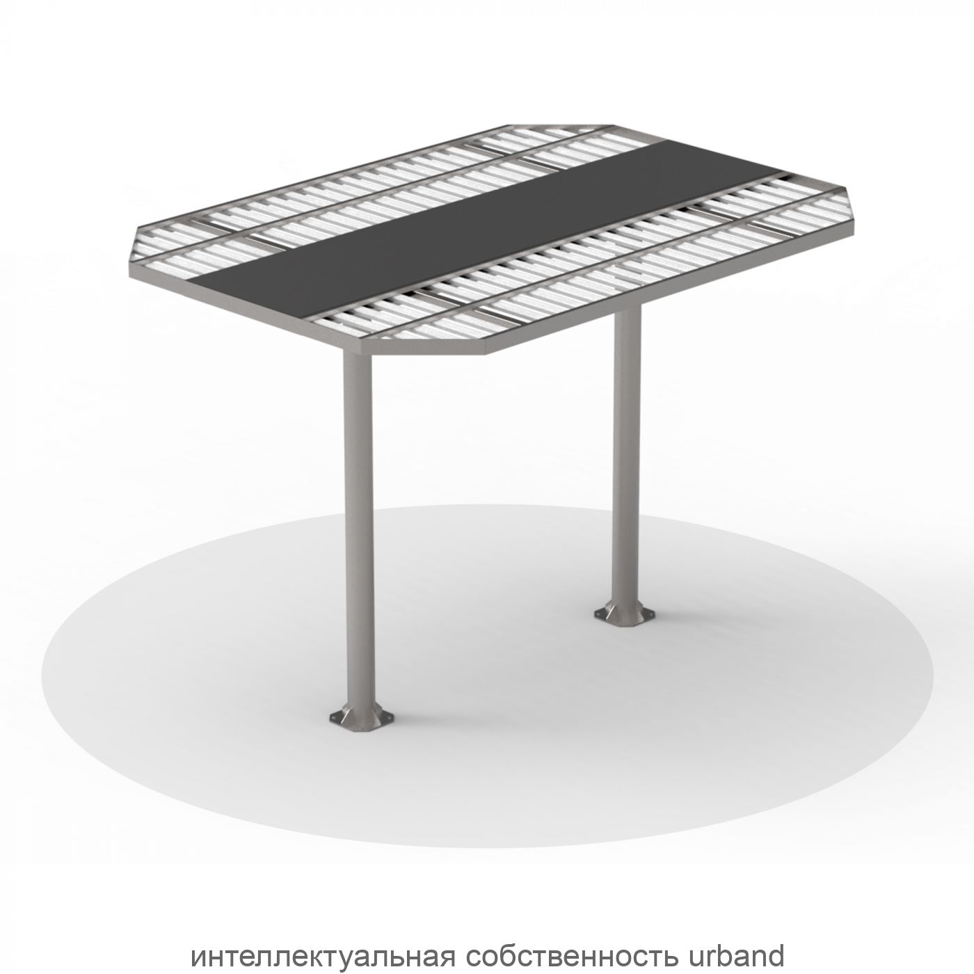 Модульный навес, разработанный как самостоятельный элемент, но допускающий объединение нескольких навесов в единую композицию, служит основой для размещения более мелких объектов серии «LAGUNA».