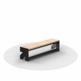 Скамья представлена в двух вариантах: со спинкой и без нее. В подкрепление концепции серии, боковые элементы выполнены в виде стрелки, что позволяет подчеркнуть динамику проектного предложения.