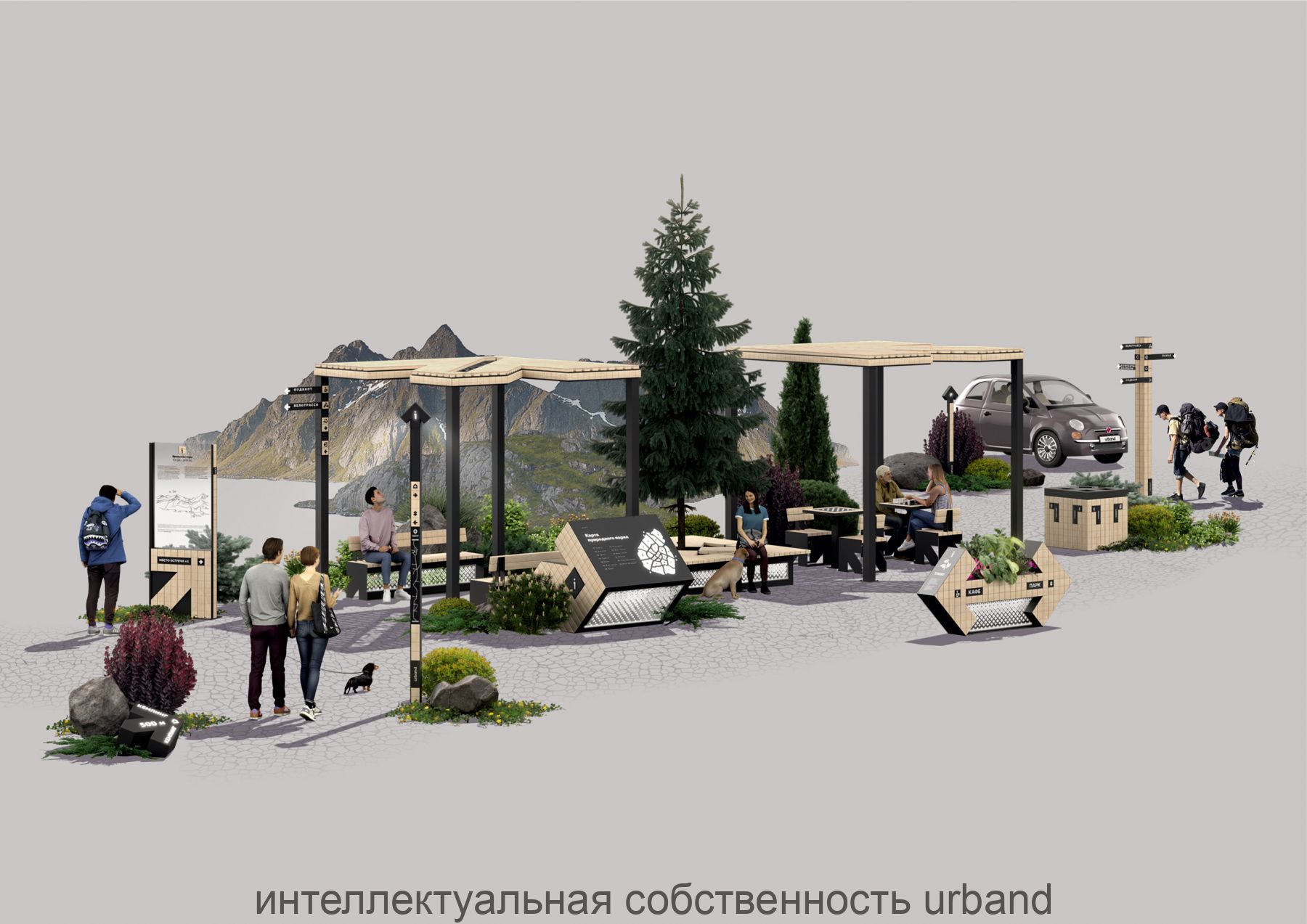 Серия малых архитектурных форм «VECTOR» основана на символе "стрелки", символизирующей движение и направление. Объекты указывают направление и вдохновляют на движение к открытию новых горизонтов. Некоторые МАФ выполняют навигационную функцию, ориентируя и направляя, в то время как другие передают динамичную энергию, воплощая стрелку как символ активного движения и развития пространства.