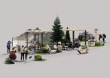 Скамья представлена в двух вариантах: со спинкой и без нее. В подкрепление концепции серии, боковые элементы выполнены в виде стрелки, что позволяет подчеркнуть динамику проектного предложения.