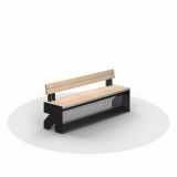 Скамья представлена в двух вариантах: со спинкой и без нее. В подкрепление концепции серии, боковые элементы выполнены в виде стрелки, что позволяет подчеркнуть динамику проектного предложения.