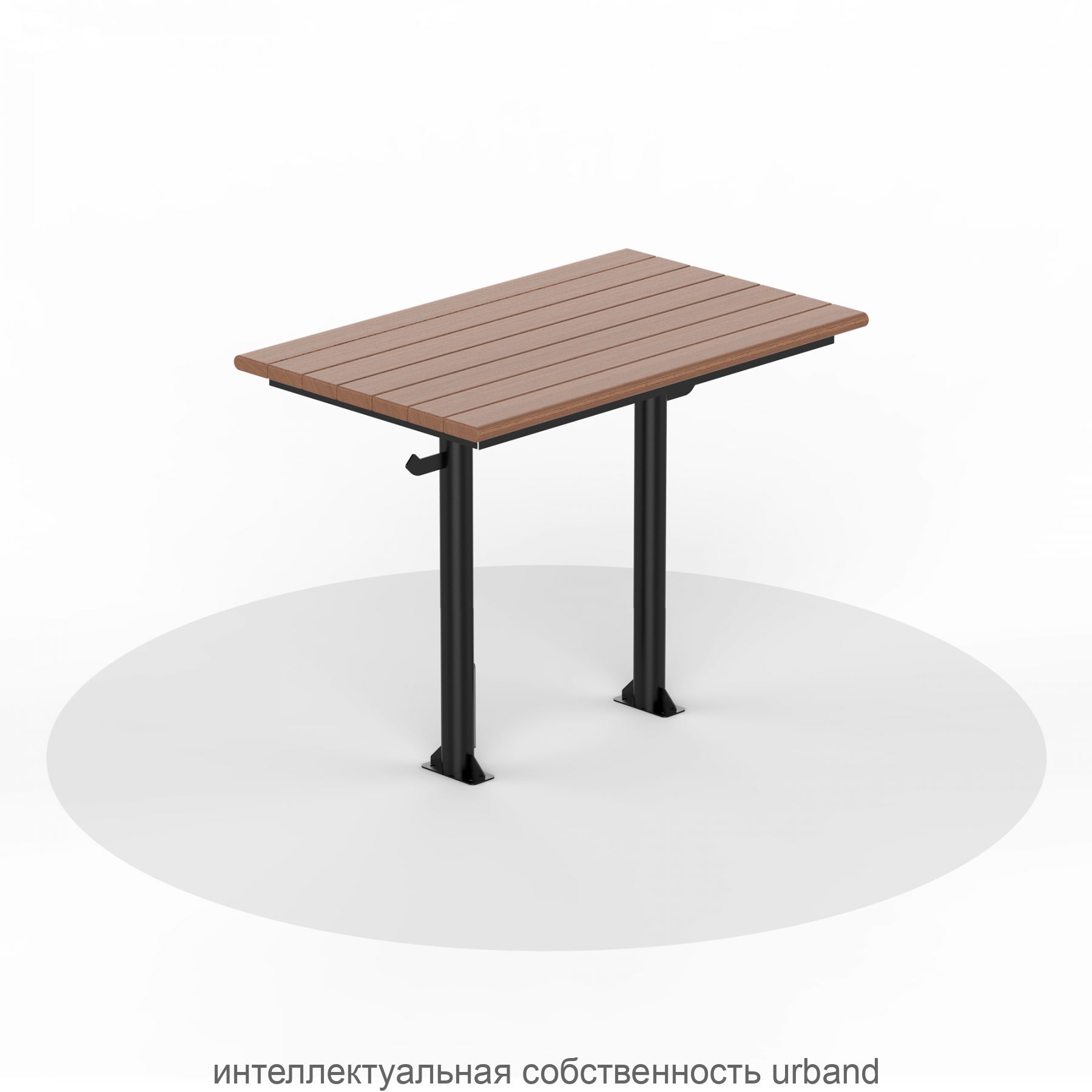 Комбинация металла и дерева обеспечивает прочность и комфорт. Крючок под столешницей позволяет удобно