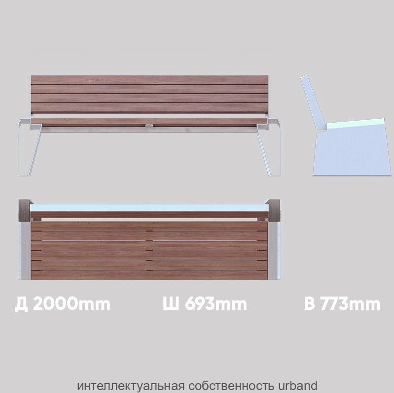 Скамья может поставляться как со спинкой, так и без нее. Оригинальная форма сделает пространство более современным. Скамья хорошо сочетается с любыми формами уличных объектов.