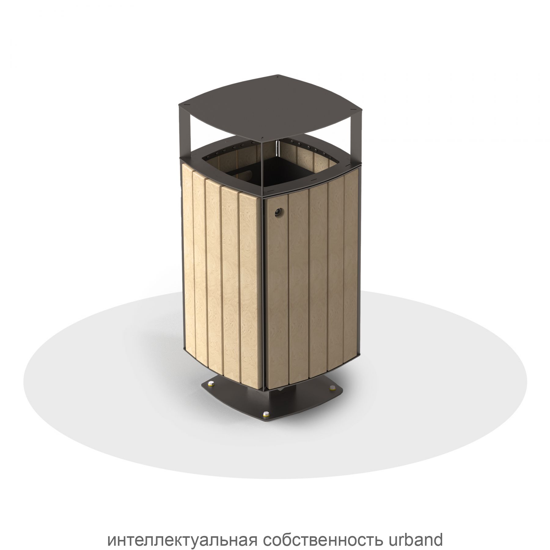 Урна характерной для серии «Antiq» формы с крышкой для защиты от осадков и дверцей на ключе для удобства обслуживания.
