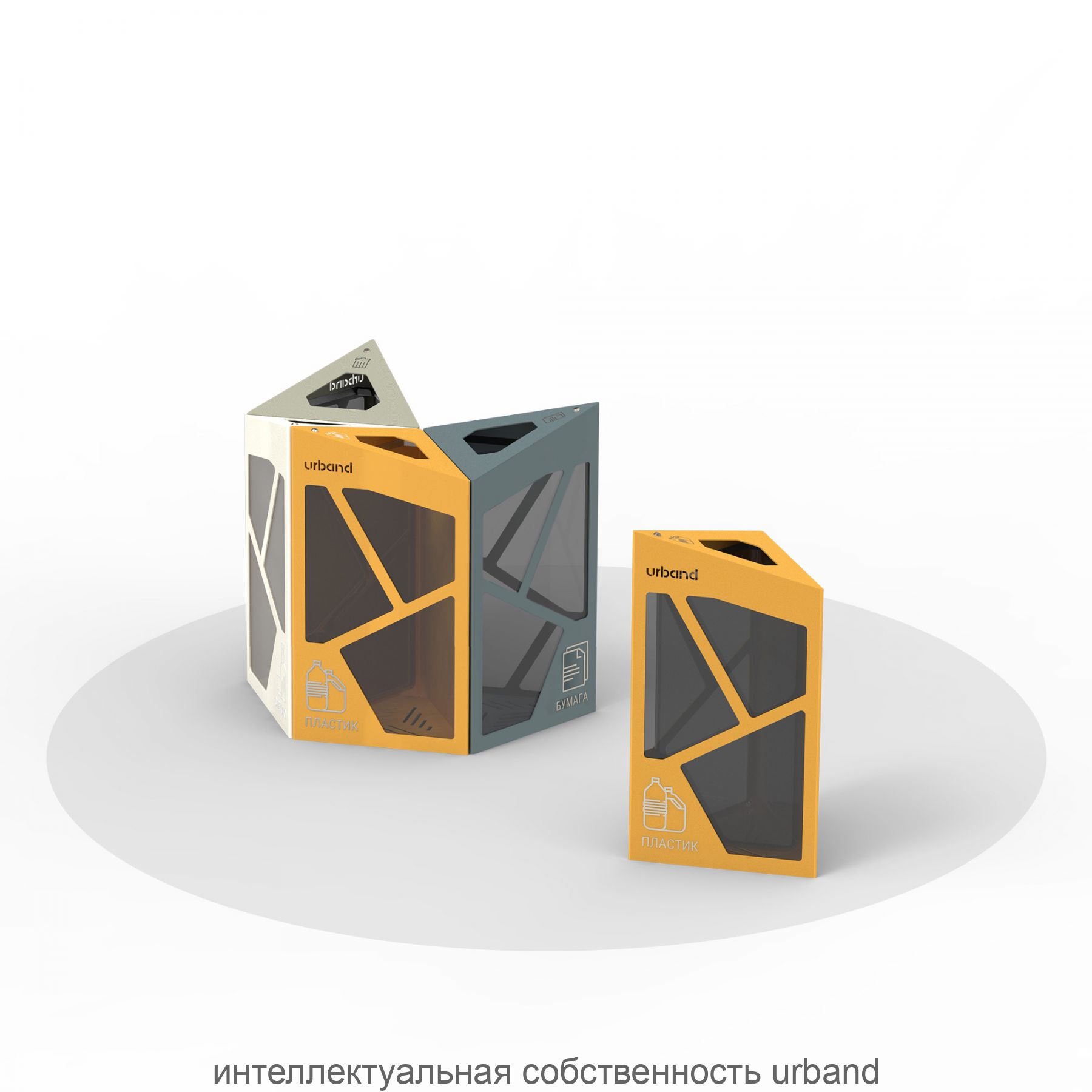 Набор модульных урн для раздельного сбора мусора с прозрачными прочными стенками. Позволяют видеть