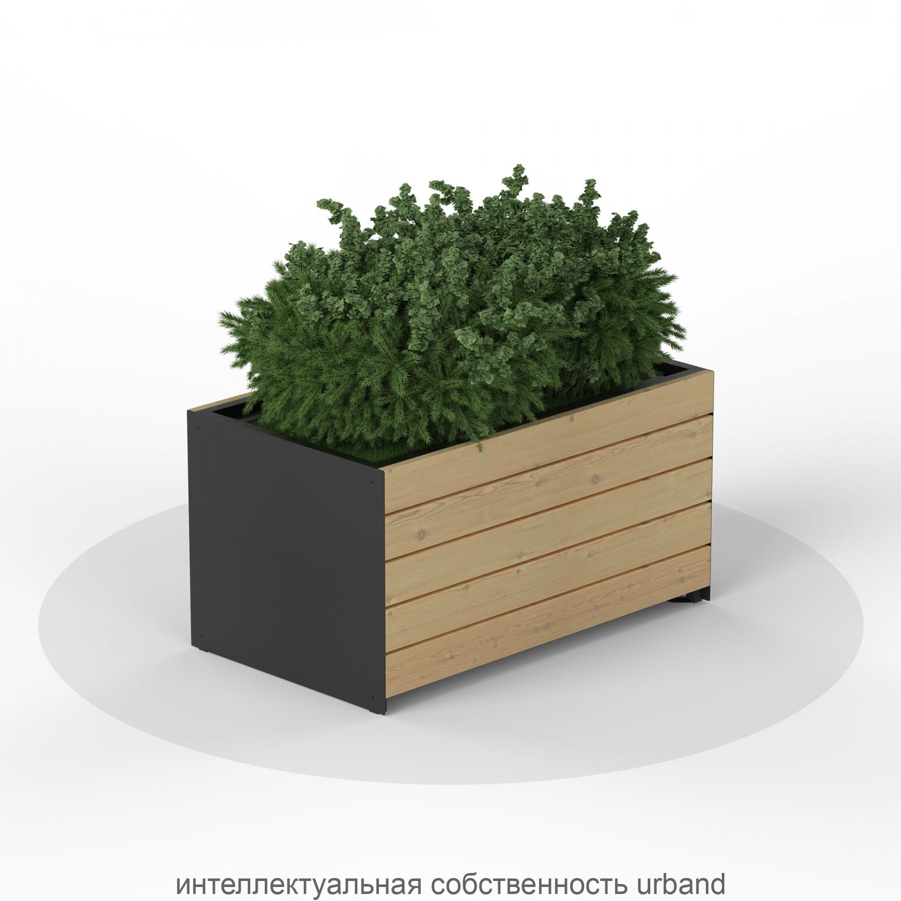 Прямоугольный вазон с древесной облицовкой с обеих сторон. Сдержанная форма и контраст материалов