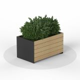 Прямоугольный вазон с древесной облицовкой с обеих сторон. Сдержанная форма и контраст материалов